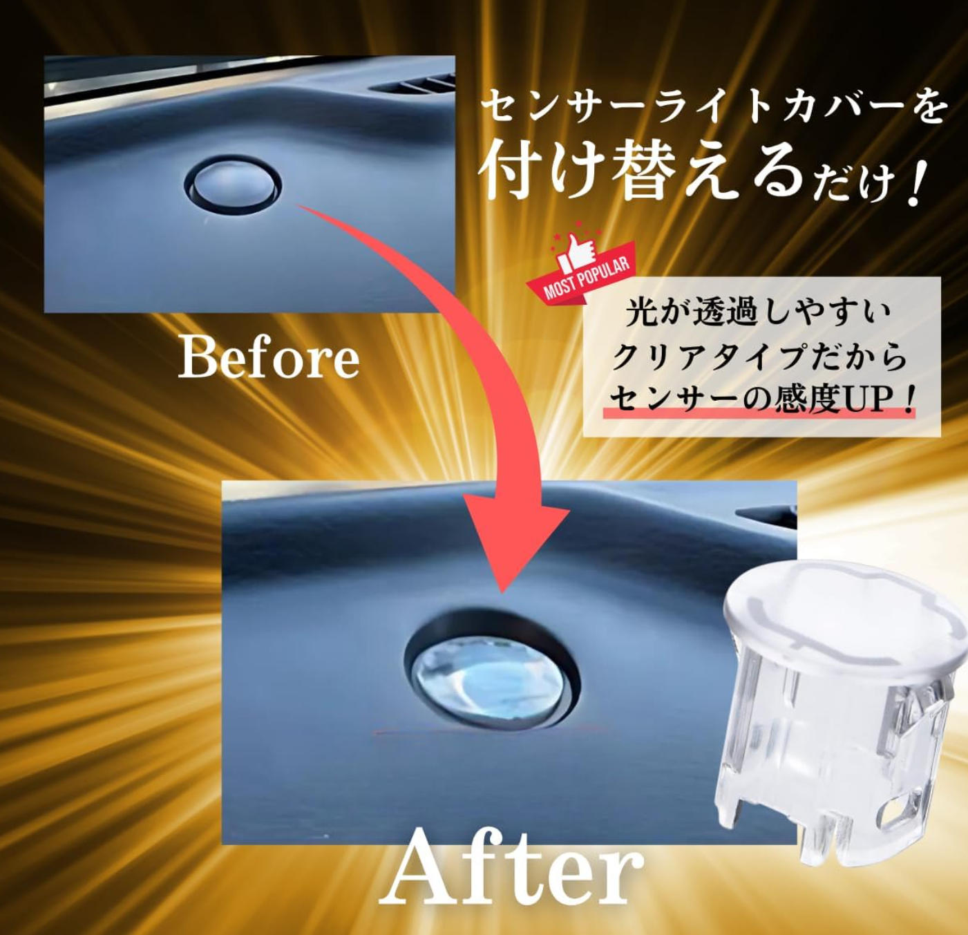 装着はセンサーにかぶせるだけの簡単タイプで、純正機能を損なうことなく使用できます。