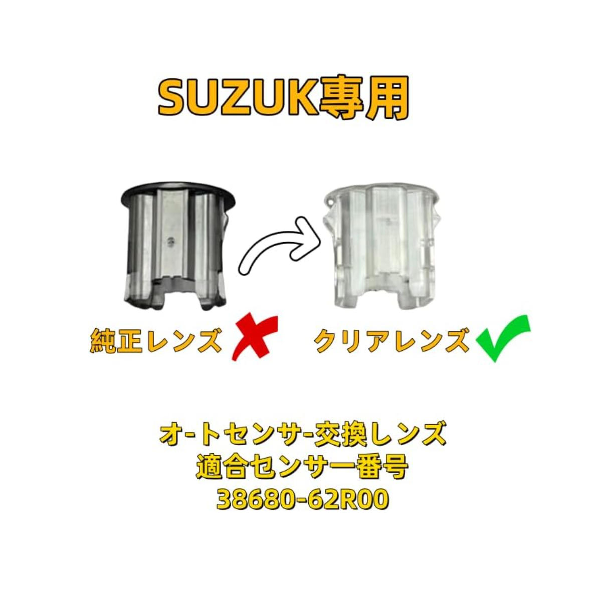 スズキ車用オートライトセンサーに取り付けることで、光の取り込み量を調整し、ライトが付きやすい車両でも無駄な点灯を抑えることができるカバーです。