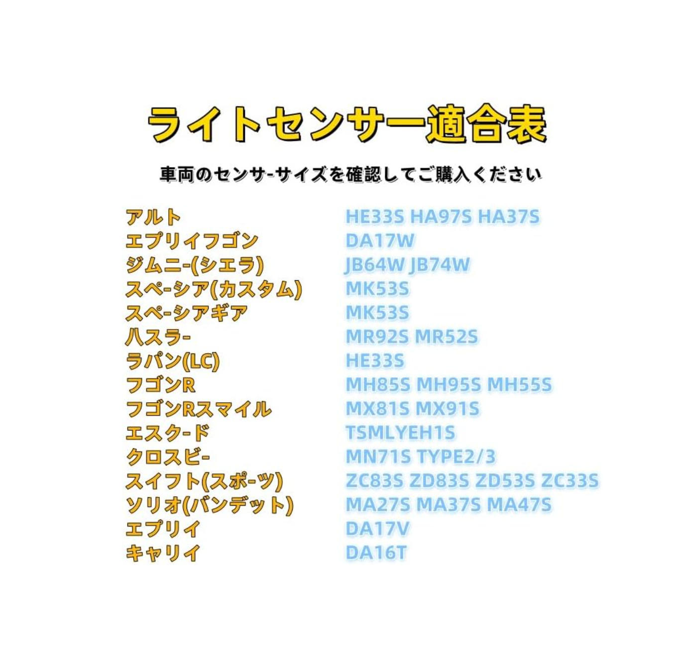 ・必ず車両側のセンサー形状とサイズをご確認ください。