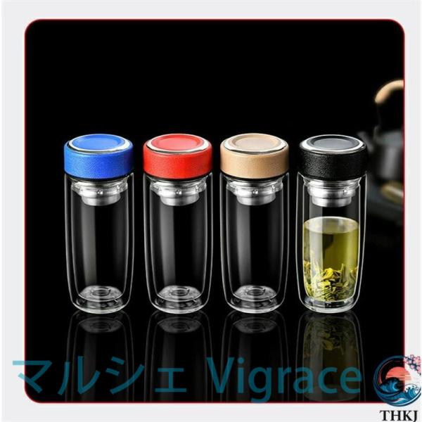 水筒 350ml 450ml ボトル 茶こし付き ガラス水筒 耐熱ボトル ティーボトル ティーカップ 透明 耐熱 二重ガラス クリア水筒 お茶 ステンレス ボトル贈り物 直飲み