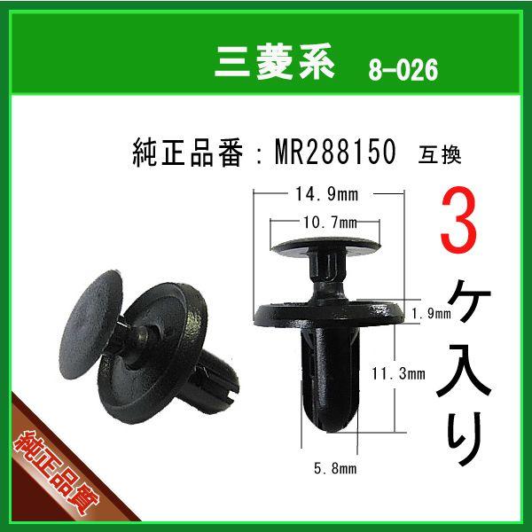 【 内張りクリップ MR288150 】 三菱系 3個 プッシュリベット バンパークリップ グリルクリップ カウルクリップ タイヤハウスクリップ
