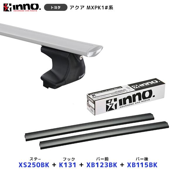 INNO アクア MXPK1#系 ノーマルルーフ キャリア ステー〔XS250BK〕+取付フック〔K131〕+ バー前〔XB123BK〕+バー後〔XB115BK〕セット | イノー カーメイト AQUA