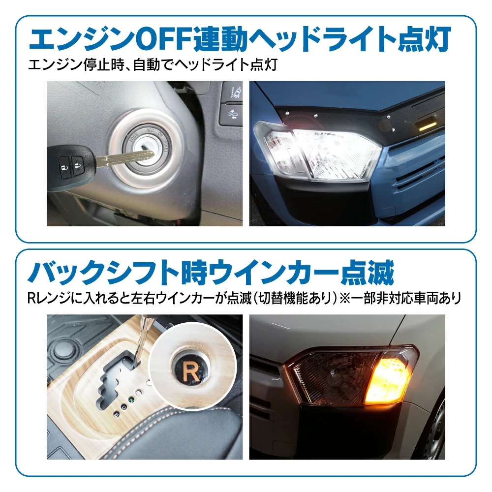 2.バックシフト時ウインカー点滅 ※一部非対応車両あり