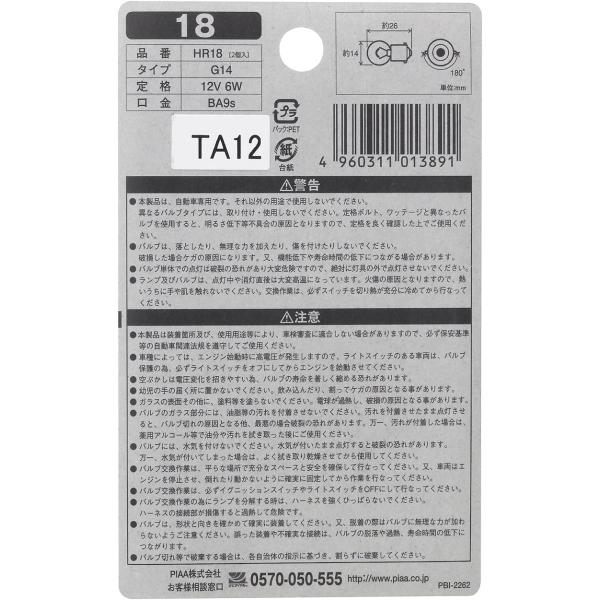 PIAA ポジション/ウインカー用 ハロゲンバルブ G14 (BA9s) クリア 2個入 12V 6W HR18 ピア