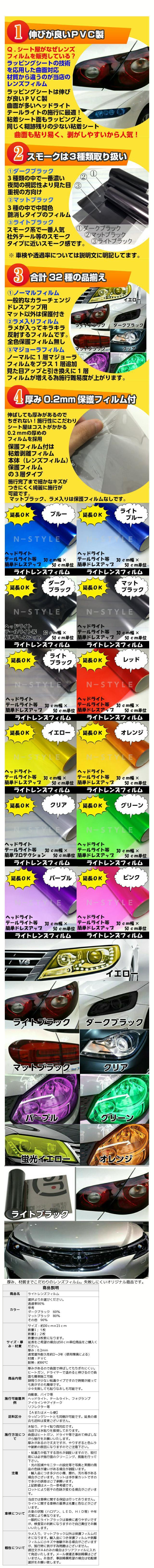 | 車検について | 当店では車検に関する保証は行っておりません。 ライトに関する車検の基準は光量と色などがございます。 お車の状態(ハロゲン、LED、HID等)や年式等により異なります。 一般的にライトブラックは車検に通りやすいですが、検査官の判断になりますので自己責任でお願いします。 |