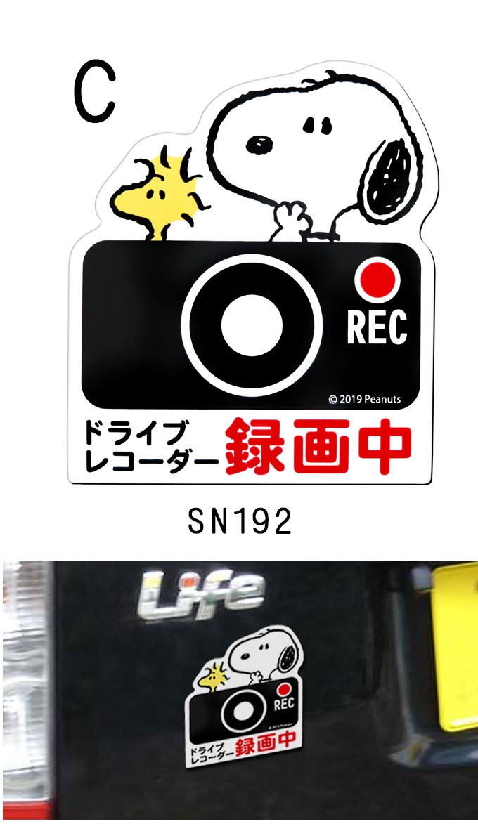 ドライブレコーダーステッカー スヌーピー 車 マグネットステッカー セーフティーサイン 煽り運転対策 防止ドラレコ搭載車 録画 RECサイン