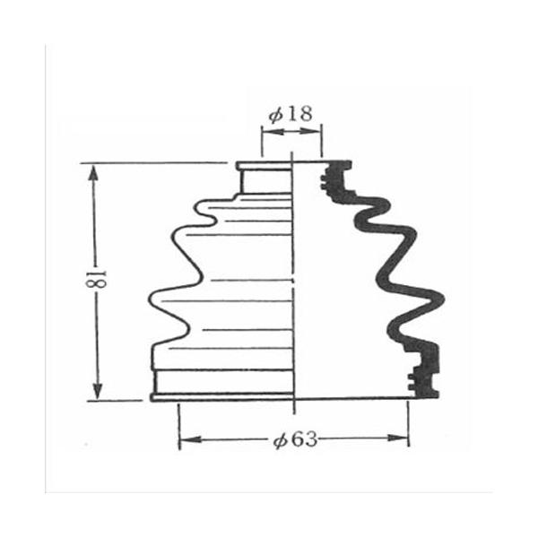 特長:主にFF車、4WD車、4輪独立懸架車などのドライブシャフトの関節部分の保護ブーツです。 ブーツは外部からの水分や汚れを保護すると同時に、内部では関節部の潤滑グリースを保持します。 経年劣化などでブーツが破れますと、潤滑グリースが外部へ飛散して、油切れや水分による錆が発生し、最悪は関節部が焼き付いてしまいます。 関節部から異音が出てからでは遅いので、ブーツに破損がないか定期的に点検することをおすすめします。