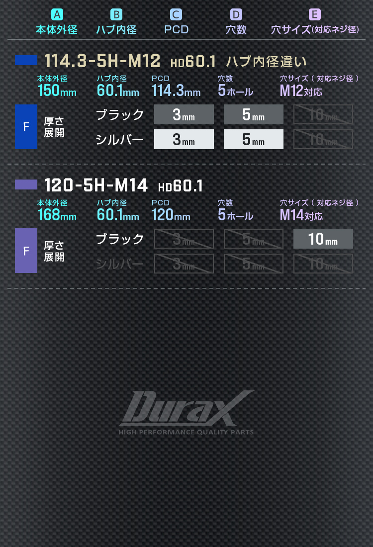 Durax ホイールスペーサー 10mm PCD114.3 4穴 5穴 ハブ付き シルバー ブラック 2枚セット スペーサー