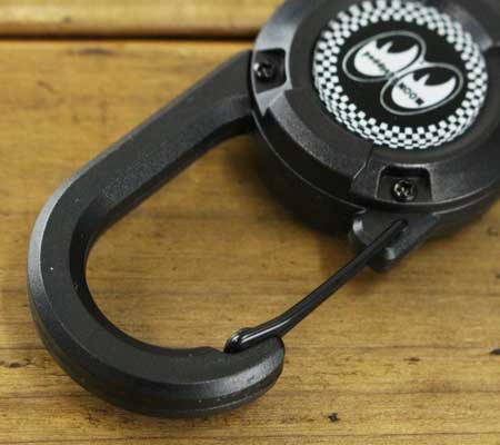 タフなスタイルがオシャレなカラビナリールキーホルダーですよ♪