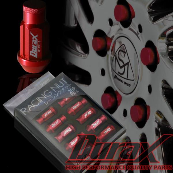 ロックナット ホイールナット ロング袋 DURAX 20個セット レッド ブルー ブラック ゴールド チタン シルバー ピンク グリーン パープル P1.5 P1.25 BBPLFR