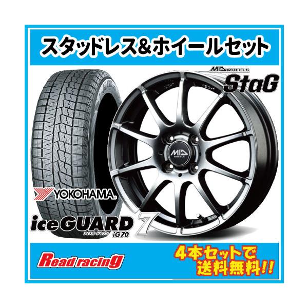 軽量モデル MID STAG 14X4.5J 4H/100 +43 ヨコハマ アイスガード セブン IG70 155/65R14 75Q 4本以上で送料無料!!