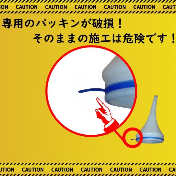 ※破損したままの施工はスチームが手にもかかる危険性があり、溶剤の直接接触は大変危険です。