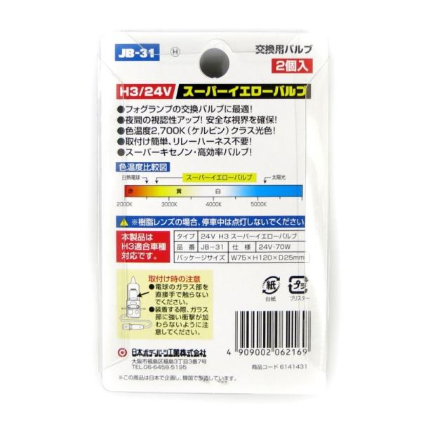 トラック用 H3 ハロゲンバルブ 24V70W スーパーイエロー トラック用品 JB 日本ボデーパーツ工業 JB-31 6141431