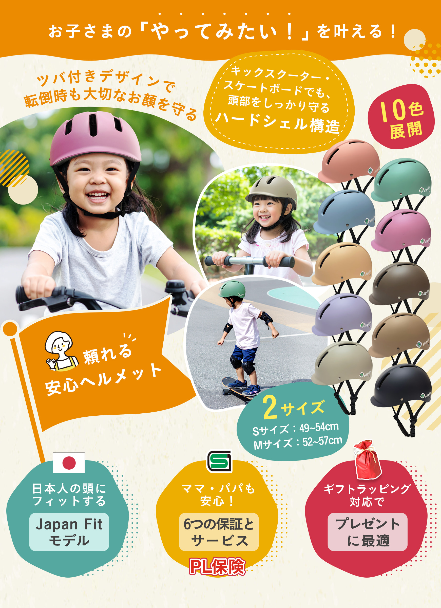 【サイズ・対象年齢】S(49-54cm)【3~8歳※目安】/M(52-57cm)【6歳以上※目安】