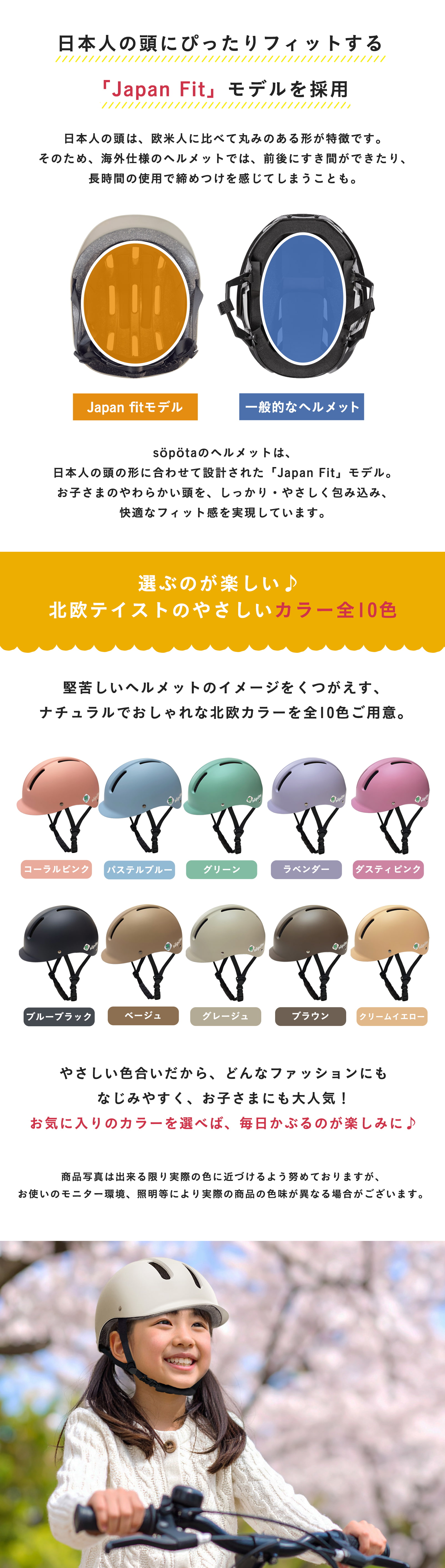 日本人の頭にぴったりなJapan fitモデル採用】日本人の丸い頭の形に合わせたJapan fitモデルを採用しているので、グローバル用のヘルメットと違い頭が痛くならず、しっかり頭を包み込みます。