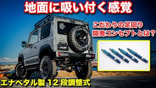 1インチアップコイルと、ショウワガレージ オリジナルセッティングのショックアブソーバー「エナペタル(ENNEPETAL) E-12」を組み合わせたサスペンションキットです。