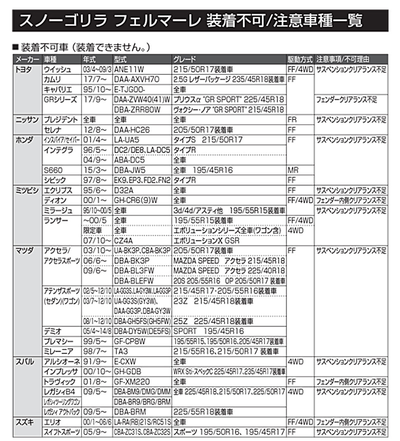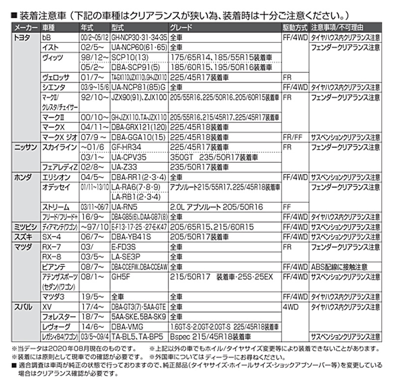 ※適合情報については令和8年1月時点の情報となります。メーカーにて適合情報等が変更、更新される場合がございますので、必ずメーカーHPにて最新情報をご確認のうえお買い求めください。