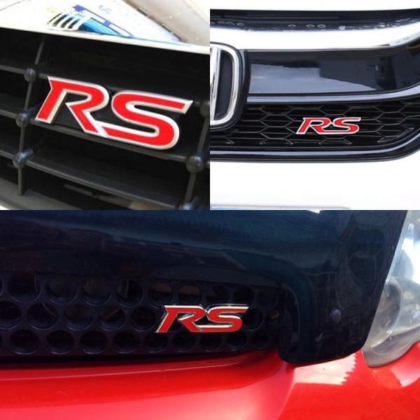 「RS」フロントグリル用メタルエンブレム 3D成型ロゴプレート 金属製ロゴ スタッドボルト式 取付簡単 立体メタルロゴ カスタム 愛車のドレスアップに CFLOGRS