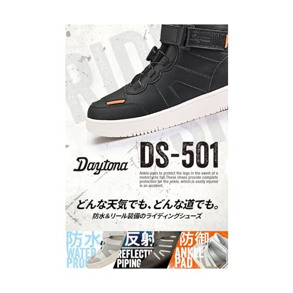 デイトナDaytona ライディングシューズ バイク シューズ 防水 ハイカット リール D-WP DS-501 ブラック 25.5cm 490