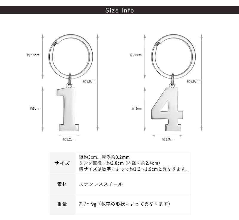 | 重量 | 約7?9g(数字の形状によって異なります) |
