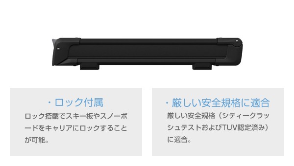・スキー板をしっかり固定。積載物の表面に傷が付きにくい柔らかなラバーアームを採用。