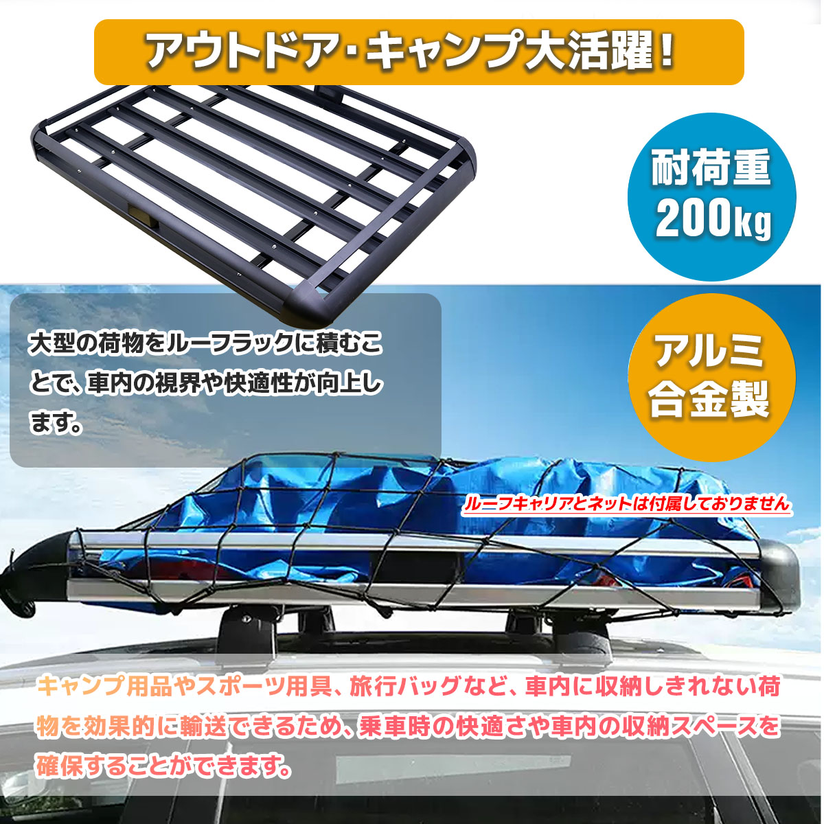 ルーフラックC 440LBS 汎用 スチール製 ルーフキャリア バスケット カーゴ黒 耐荷重200kg アウトドア 狩猟 積載 キャリー