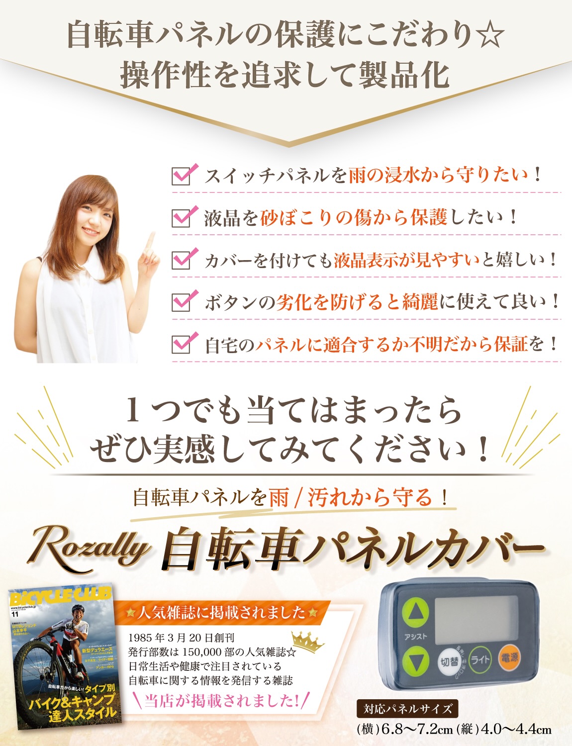 【雑誌掲載モデル】 自転車パネルカバー 電動自転車 パネルカバー スイッチカバー 電動アシスト自転車 スイッチパネル 防水 液晶保護 スイッチ保護カバー