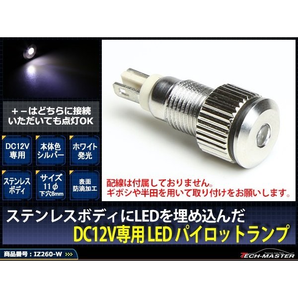 DC12V 汎用 LED パイロットランプ 防滴 ホワイト発光/シルバーボディ IZ260-W