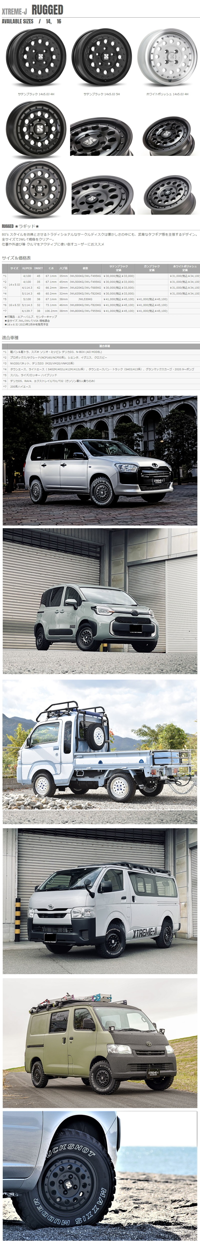 14×5.0J +48 5/114.3 MLJ XTREME-J RUGGED 新品 14インチ ホイールのみ 4本セット トヨタ タウンエース/ライトエース S402M/402U/412M/412U系