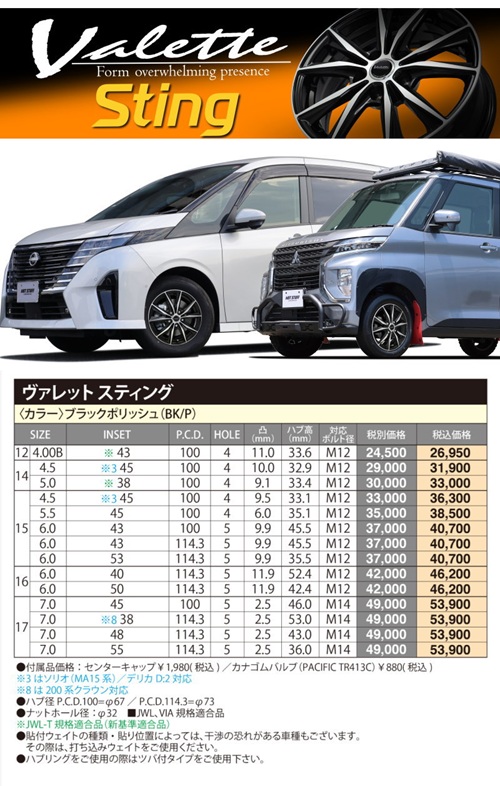 15×6.0J +43 5/100 Valette Sting 新品 15インチ ホイールのみ 4本セット プリウス 30系 50系 カローラ シエンタ 170系