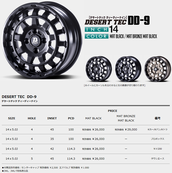 14インチ アルミホイール 5穴114.3 | デサートテック DD-9 マットブラック 5J 4本セット 正規品