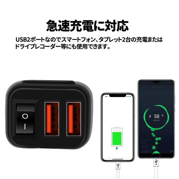 バイク用 USB電源 DC12V USB2ポート 急速充電 USBチャージャー 電圧計 電源ON/OFFスイッチ付き