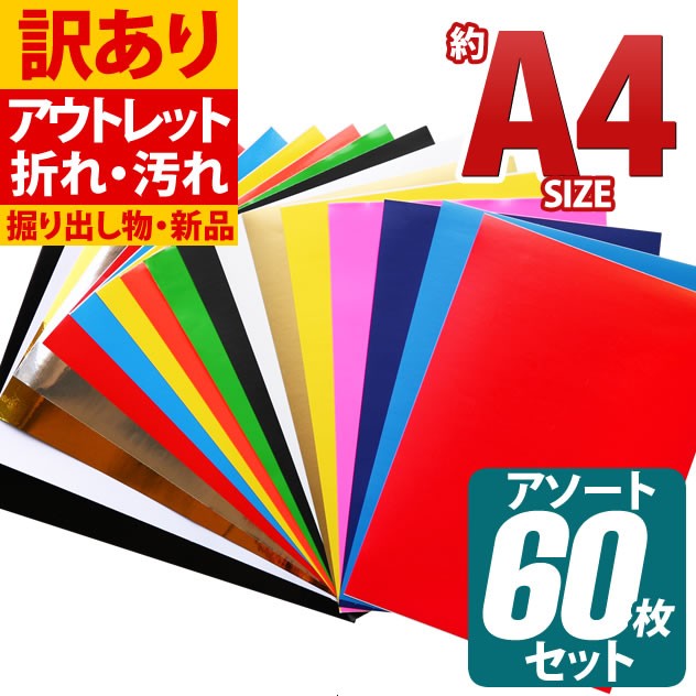 アウトレット品 折れシワあり 屋内使用向け 60枚セット 約A4サイズ カッティング用シート 粘着シート ステッカーシート