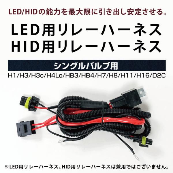※LED用リレーハーネス、HID用リレーハーネスは兼用ではございません。