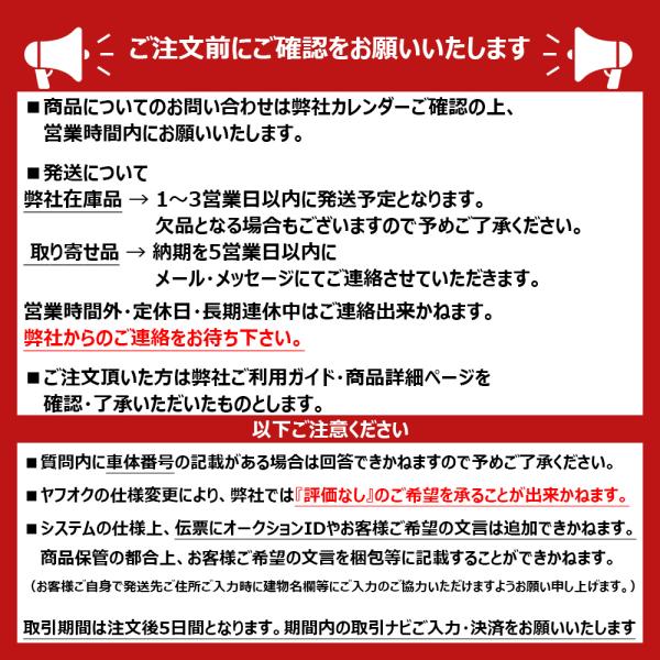 こちら→ショッピングお問い合わせフォーム←から。 ヤフオク! ご覧の方は こちら→トラスト企画お問い合わせフォーム←から。 ※ 商品確定のため商品コードまたはメーカー名・部品番号を記載の上お問い合わせください。