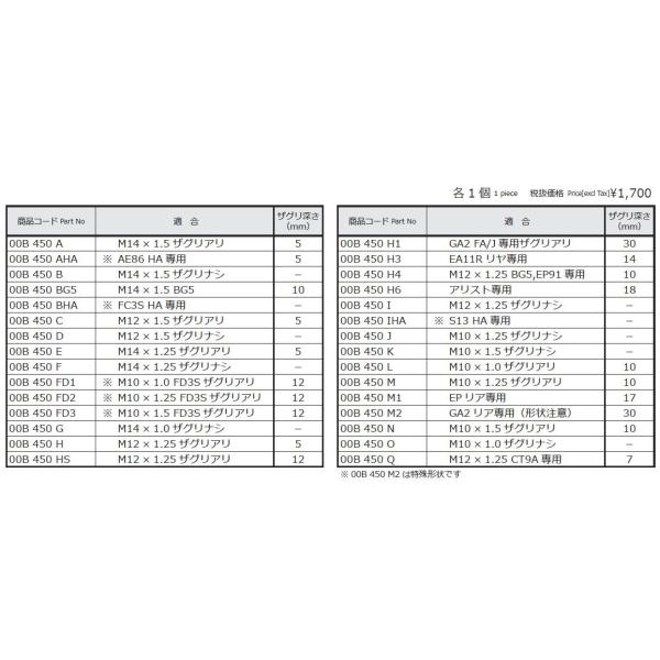 | 仕様 | 適合:M12×1.25ザグリナシ ザグリ深さ(mm):− |