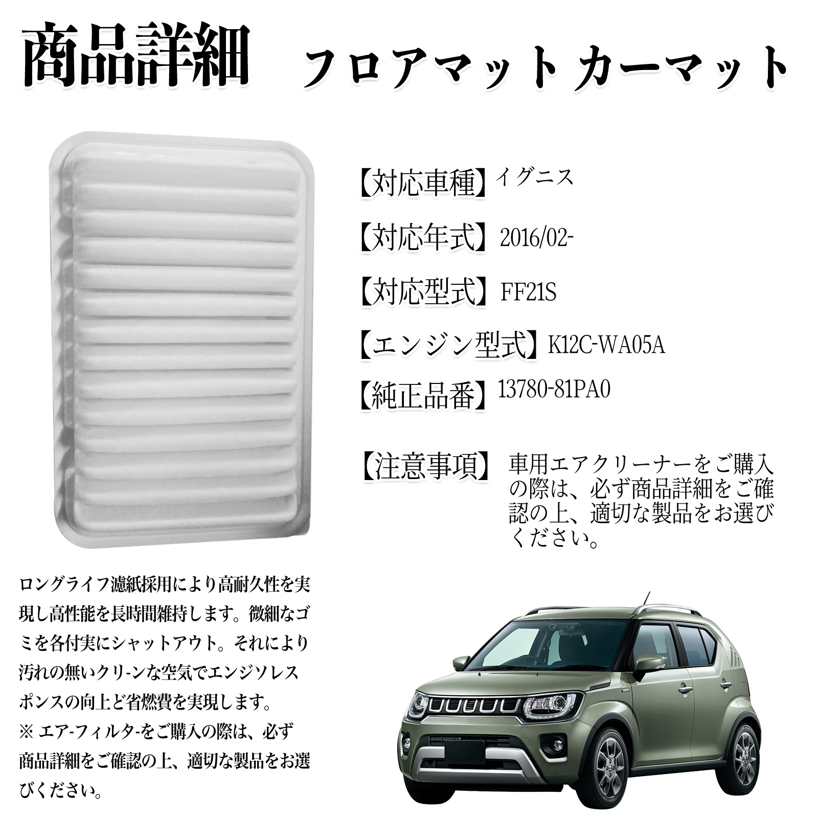 イグニス 2016/02- 純正互換品番 13780-81PA0 エアフィルター エアクリーナー エアーフィルター エンジン WeCar