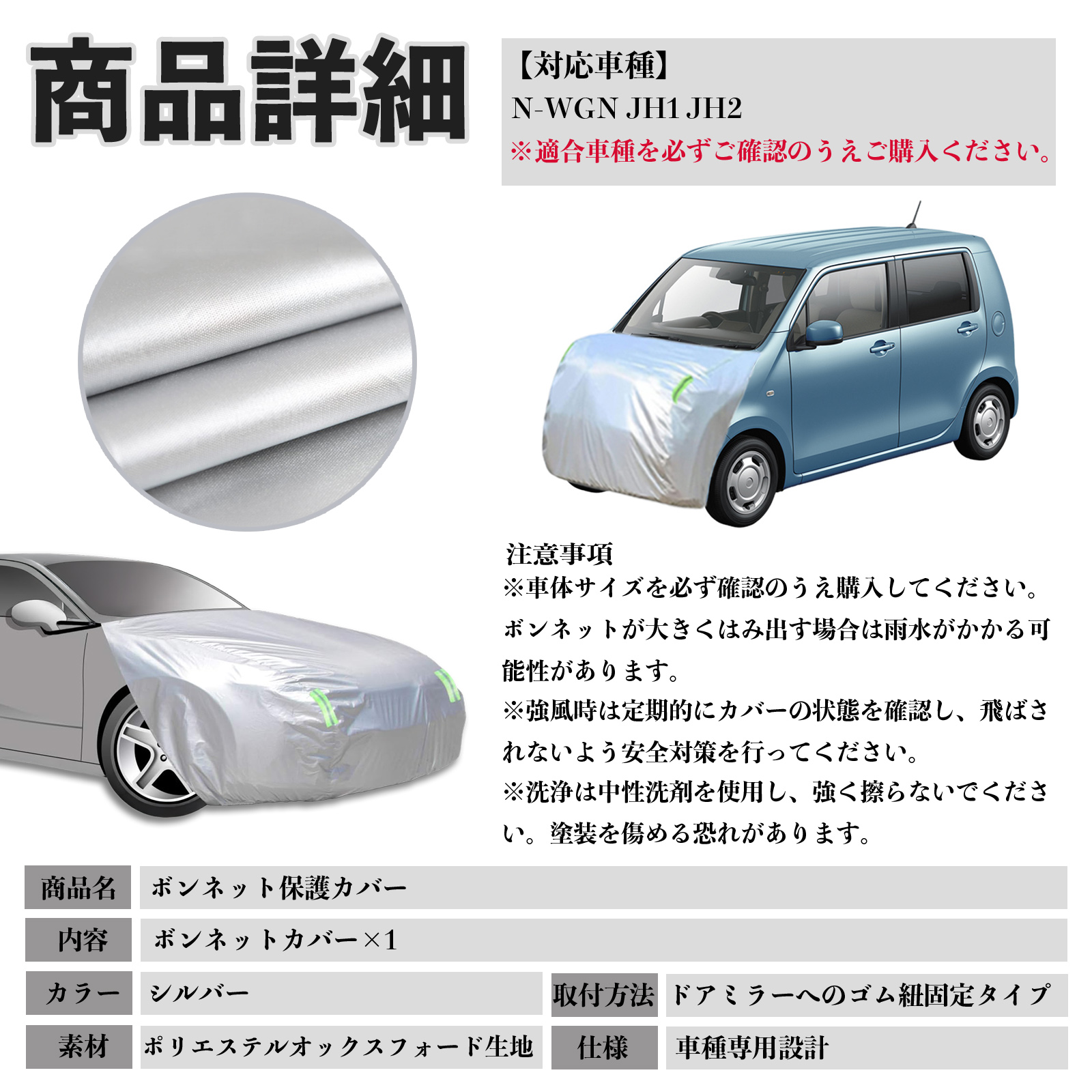 本田 N-WGN JH1 JH2 ボンネットカバー 防炎フロント保護カバー 車カバー 劣化 日焼け防止 アンチエイジング 防塵 蛍光反射 WeCar