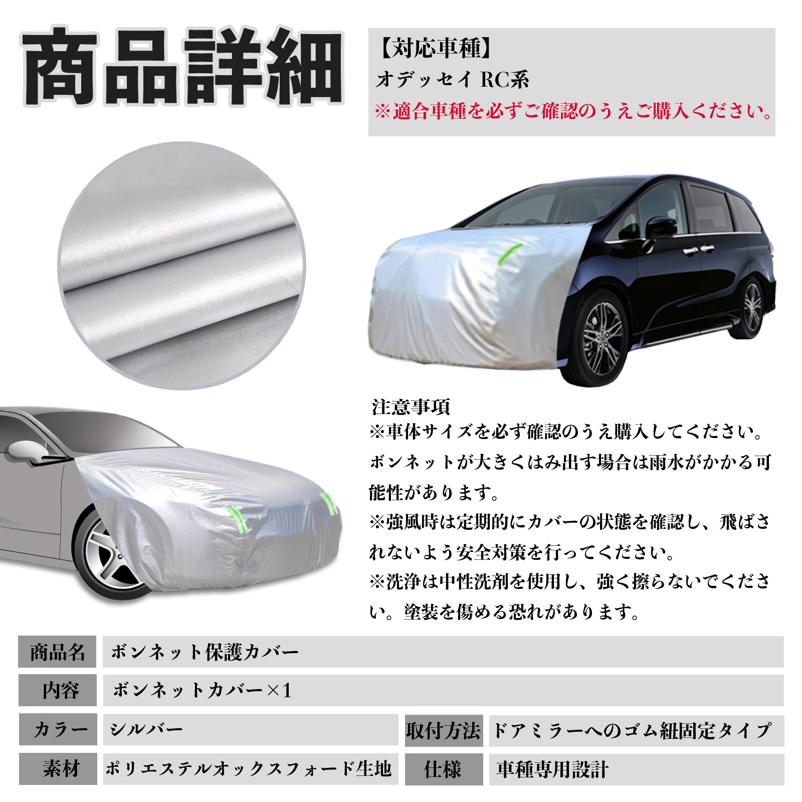 本田 オデッセイ RC系 ボンネットカバー 防炎フロント保護カバー 車カバー 劣化 日焼け防止 アンチエイジング 防塵 蛍光反射 WeCar