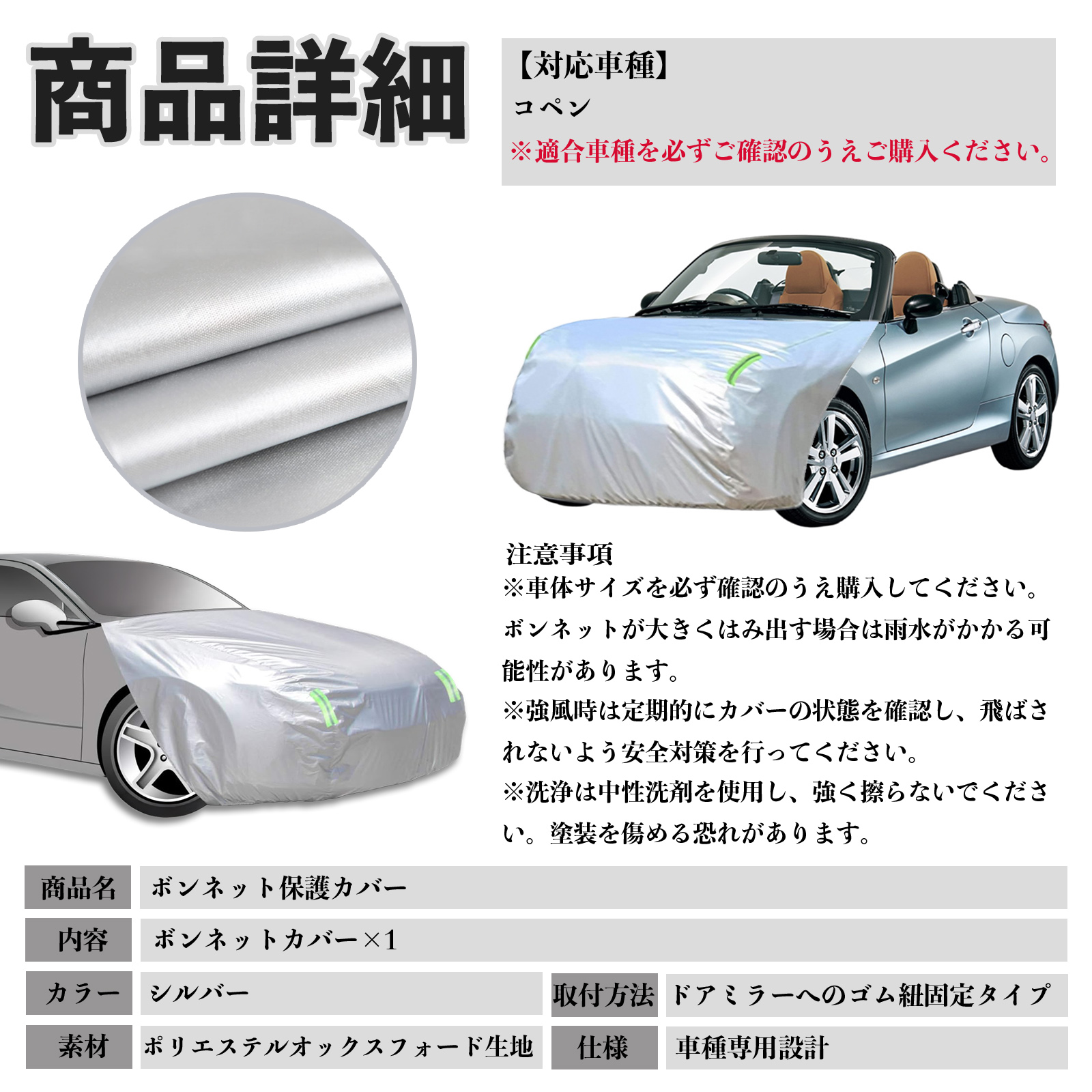※車体サイズを必ず確認のうえ購入してください。ボンネットが大きくはみ出す場合は雨水がかかる可能性があります。