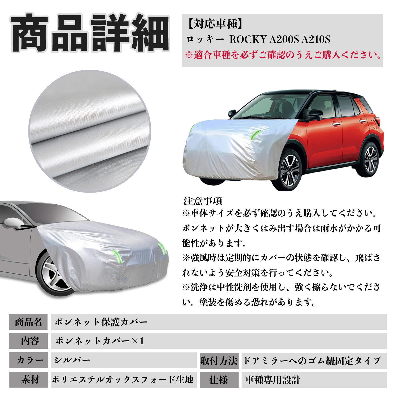 ダイハツ ロッキー ROCKY A200S A210S ボンネットカバー 防炎フロント保護カバー 車カバー 劣化 日焼け防止 アンチエイジング 防塵 蛍光反射 WeCar