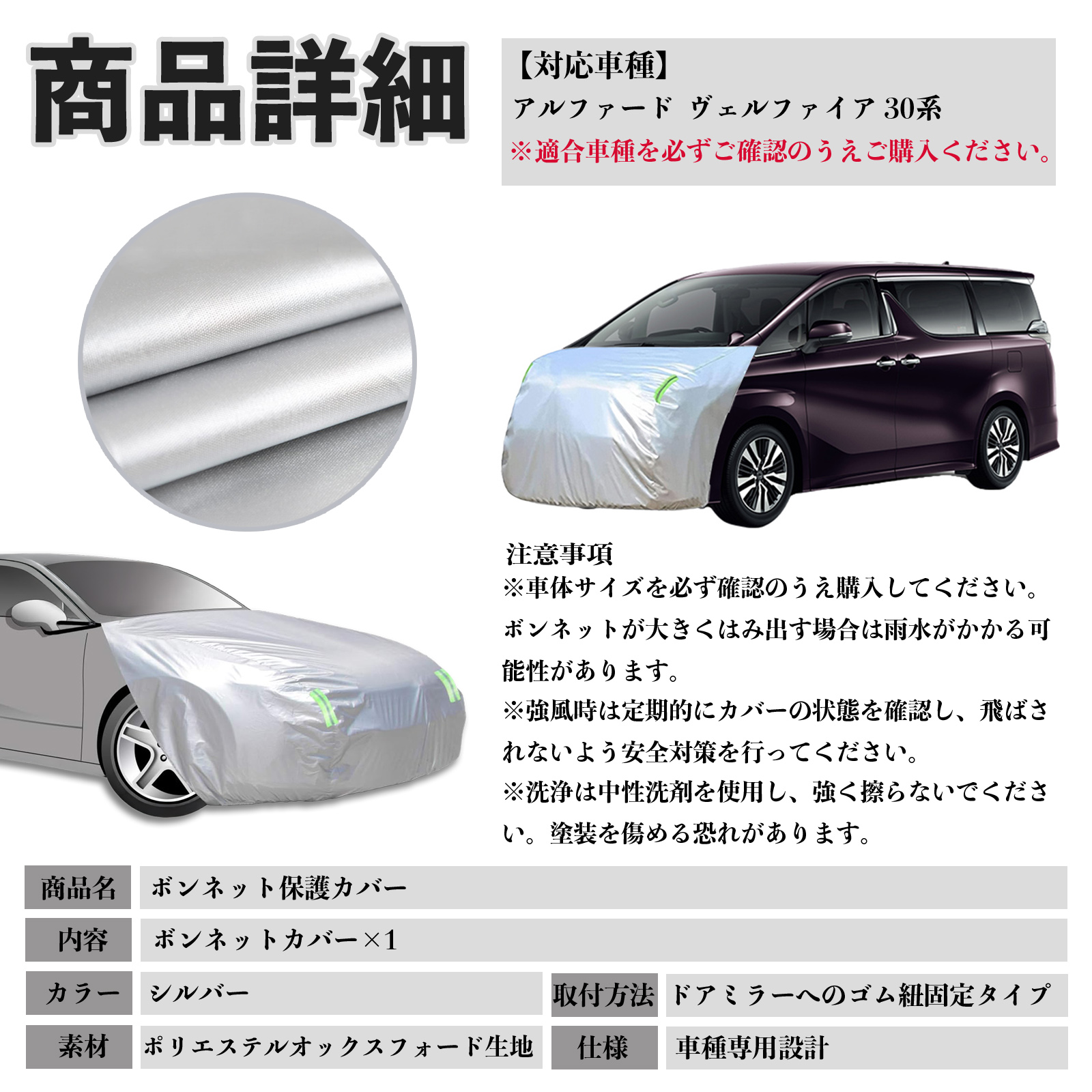 トヨタ アルファード ヴェルファイア 30系 ボンネットカバー 防炎フロント保護カバー 車カバー 劣化 日焼け防止 アンチエイジング 防塵 蛍光反射 WeCar