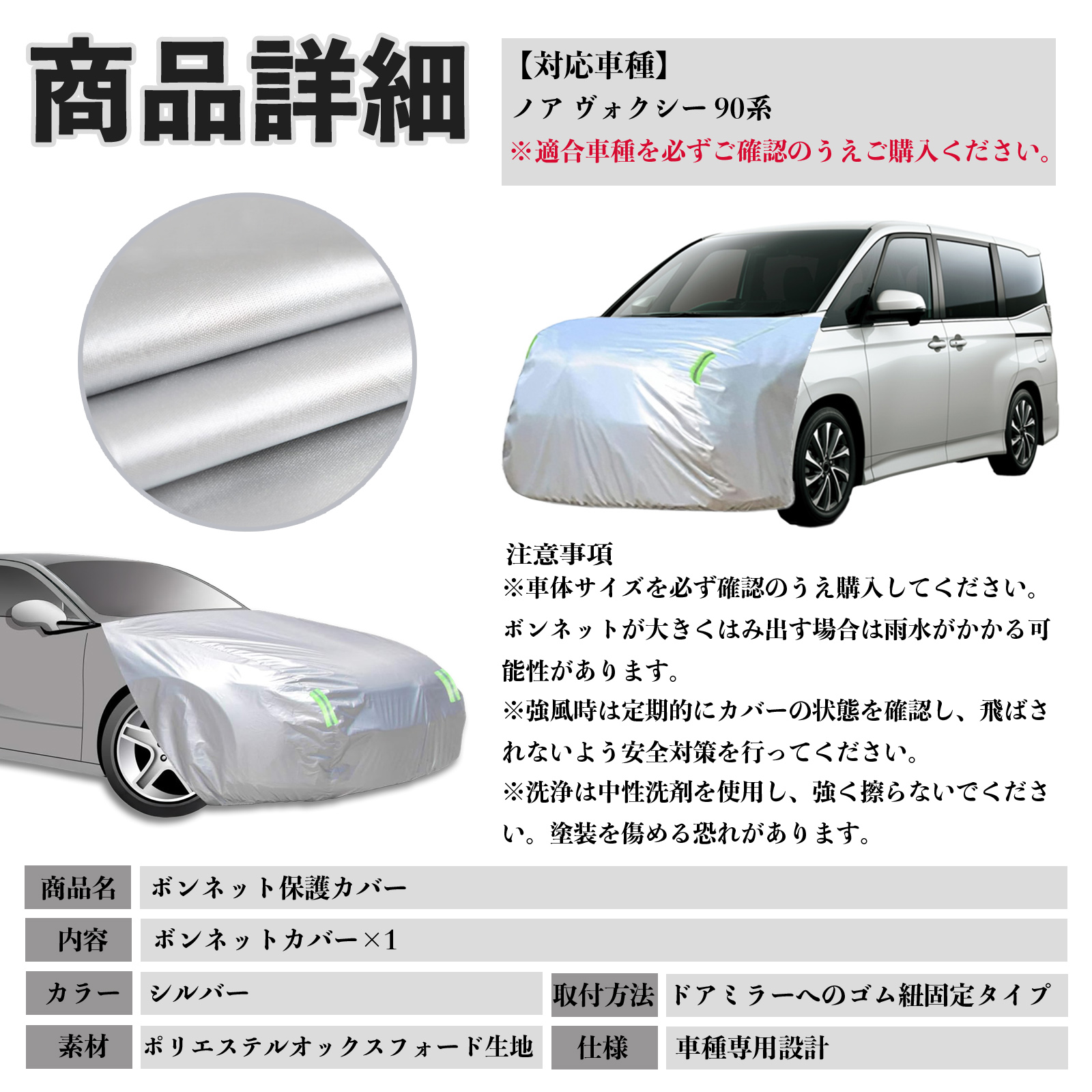 トヨタ ノア ヴォクシー 90系 ボンネットカバー 防炎フロント保護カバー 車カバー 劣化 日焼け防止 アンチエイジング 防塵 蛍光反射 WeCar