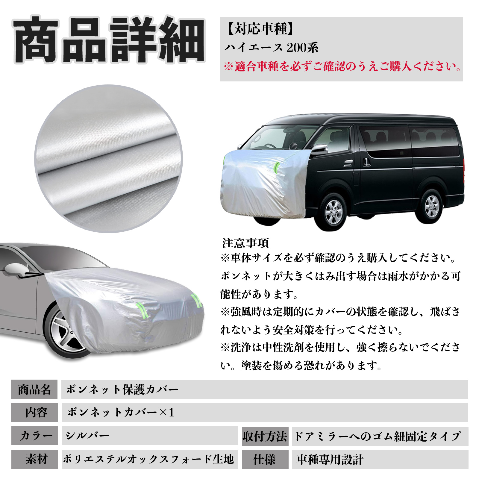 トヨタ ハイエース 200系 ボンネットカバー 防炎フロント保護カバー 車カバー 劣化 日焼け防止 アンチエイジング 防塵 蛍光反射 WeCar