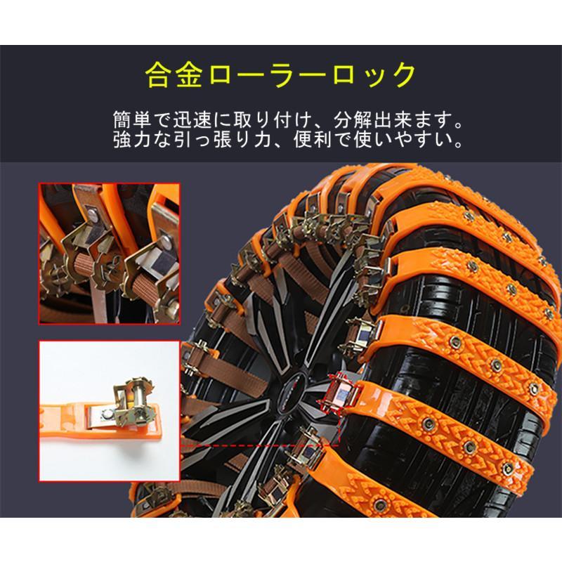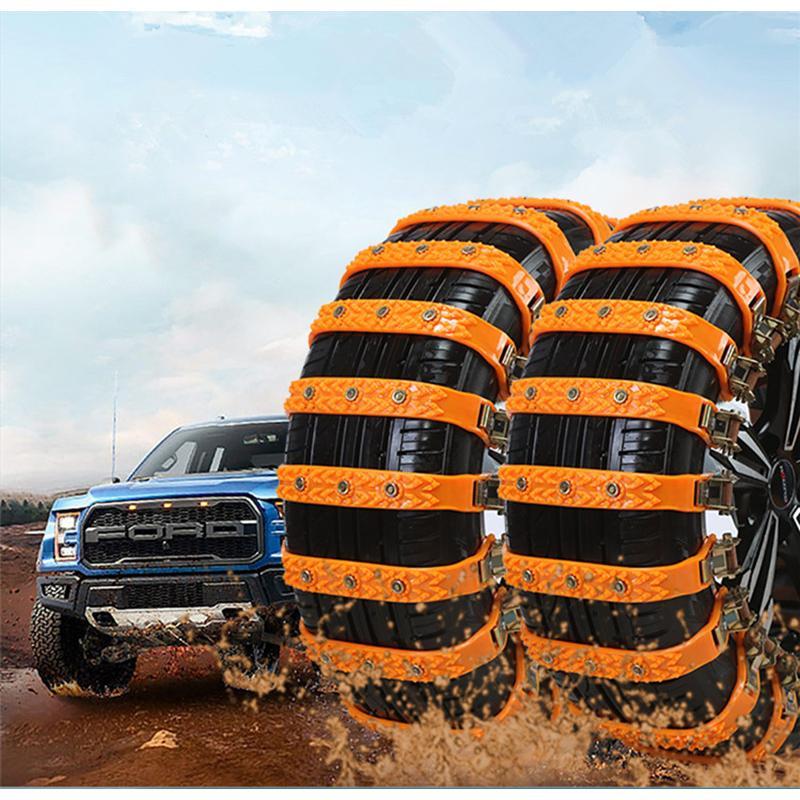 送料無料【10点セット】タイヤチェーン 非金属 自動車 スノーチェーン タイヤ滑り止め 取付簡単 ジャッキアップ不要 泥道/雪道/凍結 収納袋付き