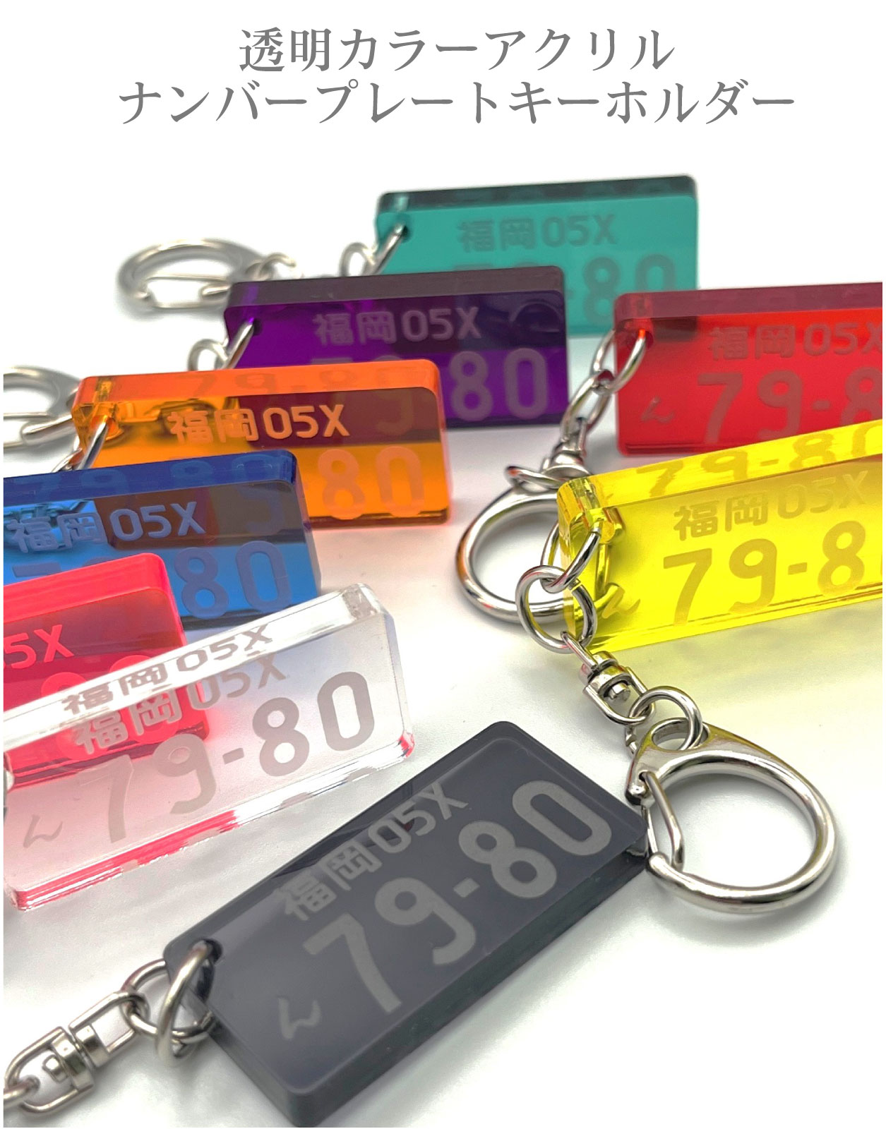 ナンバープレート 5mm厚 透明カラー キーホルダー 9色 アクリル 車 バイク
