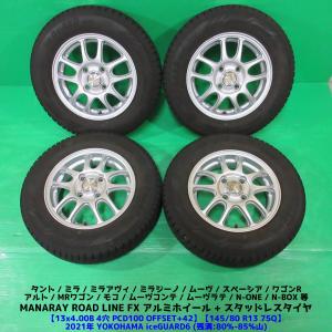 ムーヴ 145/80R13 バリ山スタッドレス 80%-85%山 YOKOHAMA iceGUARD6 4本 4穴PCD100 +42 N-BOX モコ アルト ワゴンR スペーシア 中古新潟