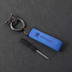 ◆プジョー PEUGEOT◆ブルー◆車用 キーホルダー アルカンターラ素材 カーキーチェーン キーリング 紛失防止 カラビナクリップ aabf qtm