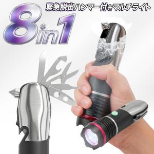 レスキューハンマー USB充電式 LEDライト 車内緊急脱出用 シートベルトカッター付 ガラスハンマー 防災 非常用COBライト as1329