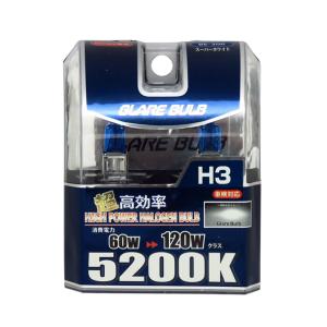 ハロゲンバルブ H3 5200K スーパーホワイト 車検対応 120Wクラス 車/ブレイス BE-306
